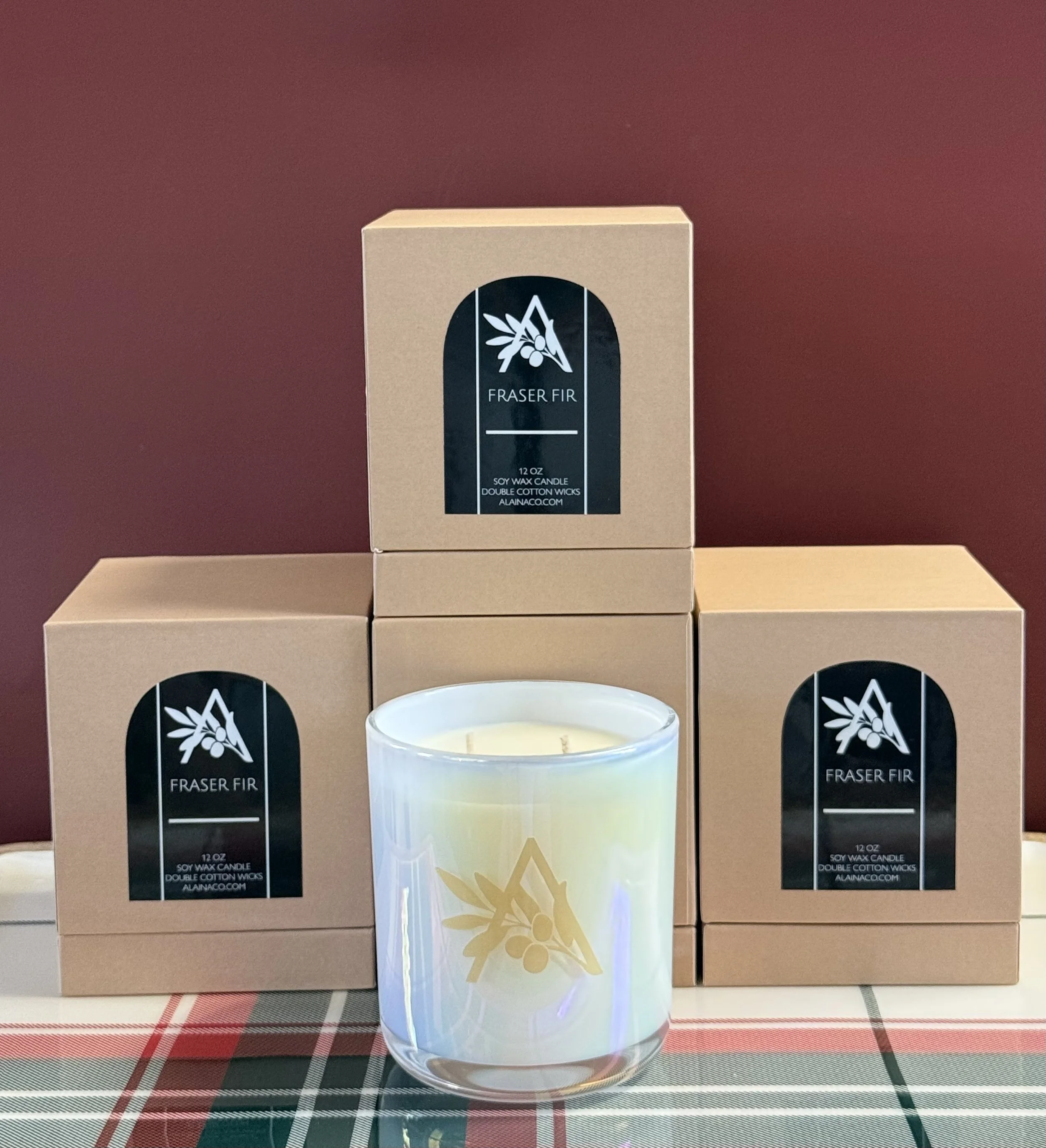 12 oz Iridescent White Jar comes with a gold “A” logo, double cotton wicks and will come in a a beautiful box ready to gift.